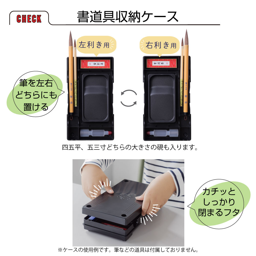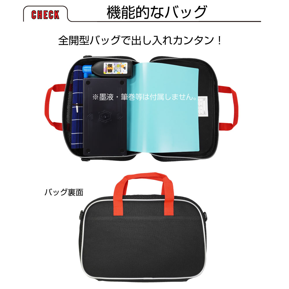 【付属品】半紙ばさみ、書道具収納ケース(左右両用・筆置き兼用)、ショルダーベルト