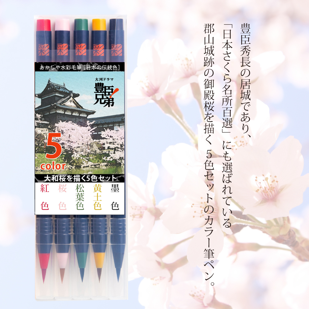 | 商品名 | 水彩毛筆 大和桜を描く5色セット(大河ドラマ「豊臣兄弟!」ロゴライセンス商品) |