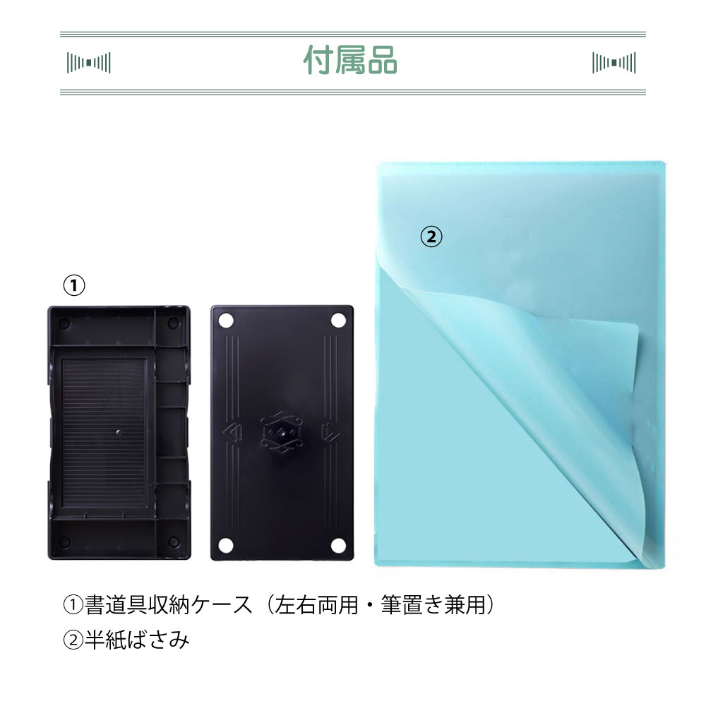 【付属品】半紙ばさみ、書道具収納ケース(左右両用・筆置き兼用)