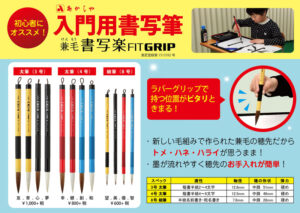 筆を持つ位置がわかるフィットグリップ採用!!(登録意匠第1513592号) 毛筆書写入門者用に全く新しい毛組みで作られた穂先です。